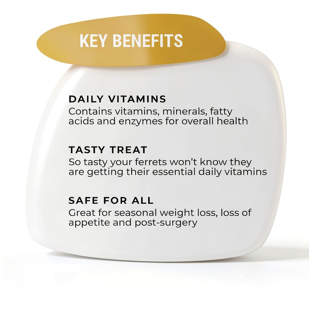 Marshall Furo-Vite is ideal for various scenarios, including post-surgery recovery, illness convalescence, and general health maintenance for ferrets. It can be used as a daily treat, training reward, or food additive to ensure your pet receives essential nutrients. Target audiences include ferret owners seeking to improve coat condition, support weight gain, or provide extra care during stressful periods. Simply squeeze the tube gently to dispense the product directly or mix it with food, following the recommended daily amount based on your ferret’s weight for best results.